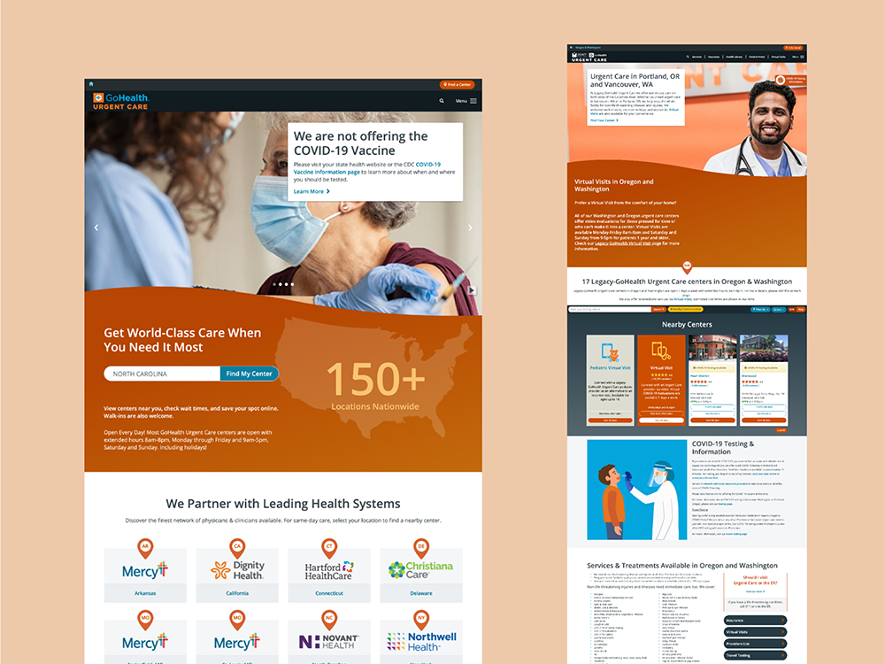 GoHealth Urgent Care brings convenient healthcare to communities nationwide. Following the massive procedural overhauls experienced by healthcare institutions during the COVID-19 pandemic, GoHealth realized that their current website no longer satisfied their needs as an enterprise-level healthcare organization.